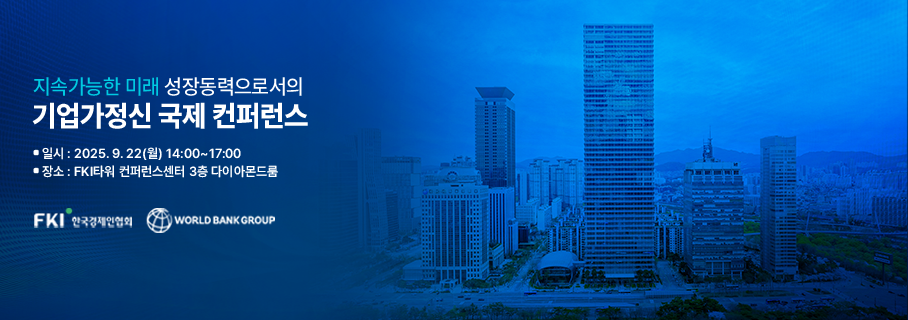 한경협, 세계은행과 공동 ‘기업가정신 국제세미나’ 첫 개최 - 한경협, 공신력 있는 글로벌 기업가정신지수 개발을 위해 세계은행과 협력키로- 국가혁신역량, 스케일업이 핵심…대기업·스케일업 연계 강조- 글로벌 기업가정신 지수, 미국 1위...